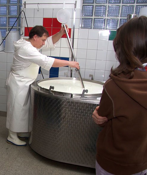 Besichtigung der Spezialitätenkäserei, in der Ziegen- Schaf- und Büffelmilch aber auch Kuhmilch verarbeitet wird. Anschliessend Degustation unserer Produkte.
