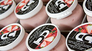 Joghurt aus Kuhmilch. Wann immer möglich mit regionalen Früchten, zum Beispiel mit einheimische Hagebutten, Honig oder Holunder.