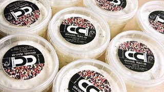 Schafmilch-Frischkäse in verschiedensten Variationen, zum beispiel Natur, Dill und Knoblauch oder Pfeffer.
